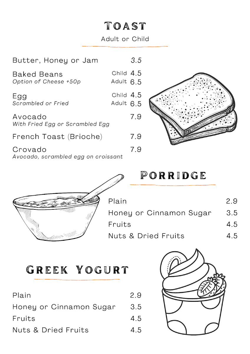 - Toast Varieties: Try delightful choices including Egg and French Toast, ranging from £3.50 to £7.90.
